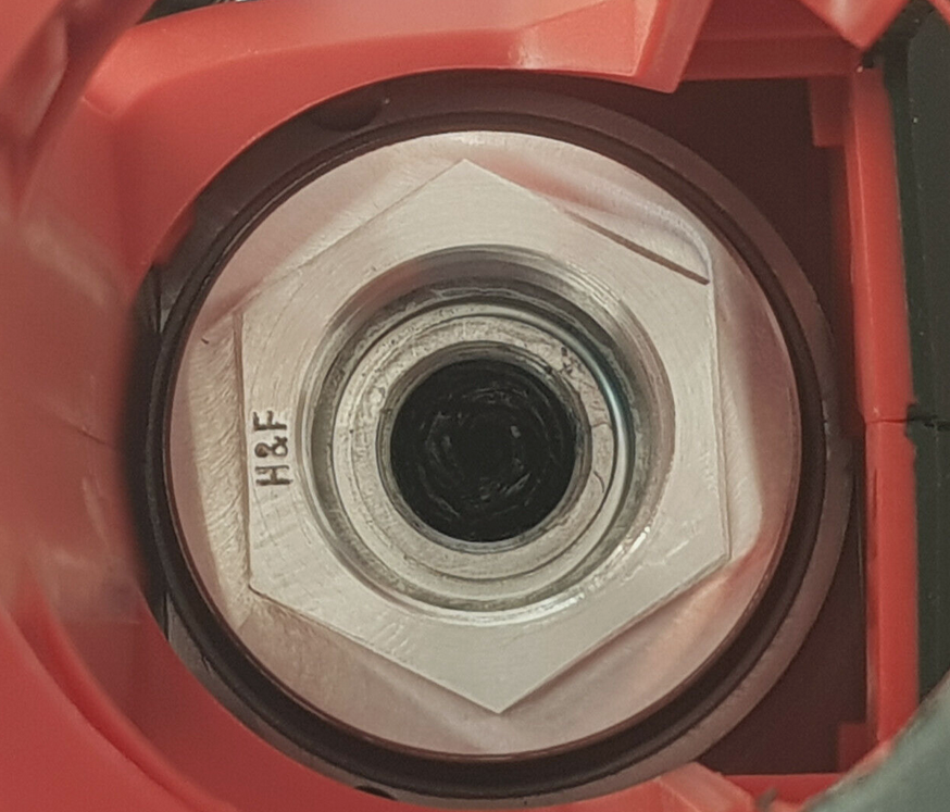 Schraubkartusche in den aufgesetzten Sechskant in das vorgesehene Gewinde eingedreht werden. Die Metallkartusche mit dem langen Stempel hinten raus wird nicht mehr benötigt.Mit dem aufgesetzten